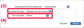 - Seleccione [Sobre] en el menú "Tipo de papel".