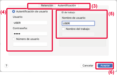 - Especifique el nombre de usuario y el del trabajo según