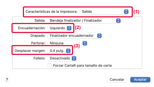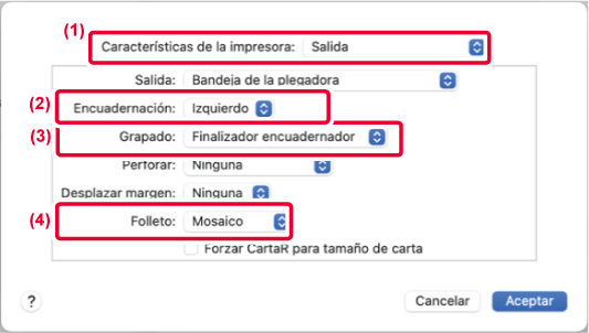 capacidad) y el trabajo no se saca correctamente con [Encuadernador], seleccione
