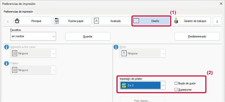 - Seleccione el número de hojas que desee utilizar en "Impresión de póster".