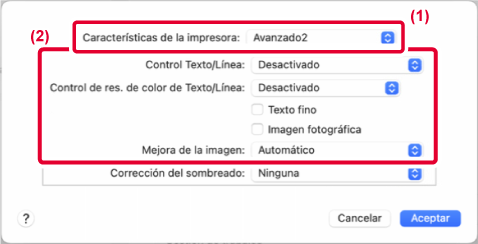 Puede suavizar o afilar los bordes del texto y los gráficos. Auto: Realizar una mejora óptima de la imagen. Off: No se aplica ninguna mejora a la imagen. Nítida: La mejora de la imagen se aplica nítidamente. Suave: La mejora de la imagen se aplica suavemente. |