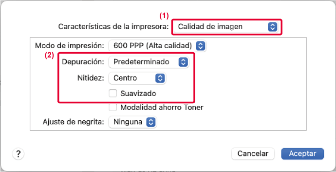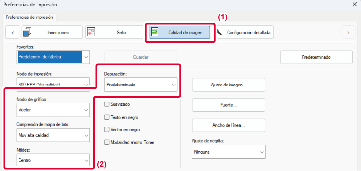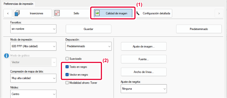 Las técnicas de mejora de la resolución (RET) se emplean para suavizar los contornos de las imágenes. Este ajuste procesa la imagen para aumentar la resolución y suavizar bordes de imagen irregulares. |