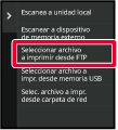 Pulse la tecla [Seleccionar archivo a imprimir desde FTP] en el panel de acciones.