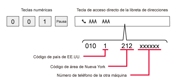 servicios telefónicos internacionales (por ejemplo, "001") y el