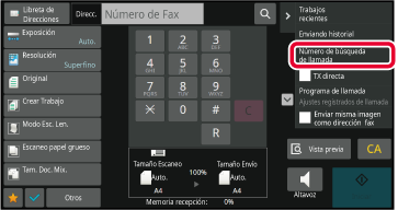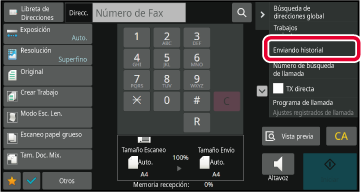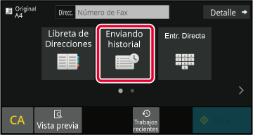 En la pantalla inicial o la pantalla de la libreta de direcciones, pulse [Enviando historial] en el panel de acciones.