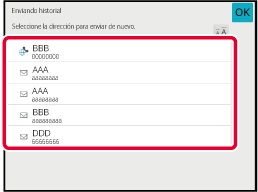 historial de envíos a la libreta de direcciones. lo que resulta