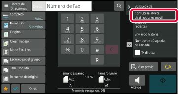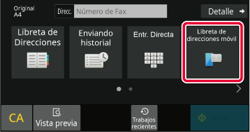 En la pantalla inicial o la pantalla de la libreta de direcciones, pulse [Consulte la libreta de direcciones móvil] en el panel de acciones.
