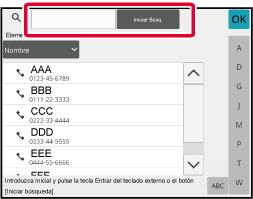 terminan en "XX".Introduzca una palabra clave y pulse la tecla [Iniciar Búsq.].
