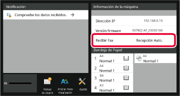Puede comprobar el modo de recepción de fax actual en el área de sistema de la parte superior de la pantalla.