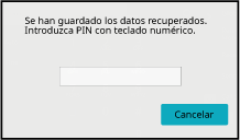 Al tocar la tecla [Cancelar], se cierra la pantalla de entrada del código PIN. Volverá a aparecer al pulsar o al cambiar de modo. La tecla de datos en memoria parpadeará en el panel táctil.