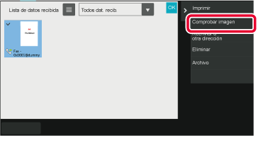 Pulse la tecla correspondiente a los datos recibidos que desee comprobar y pulse [Comprobar imagen] en el panel de acciones.
