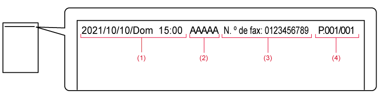 (fecha, hora, nombre del remitente, número de fax o nombre de destino