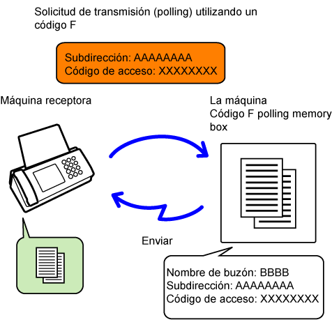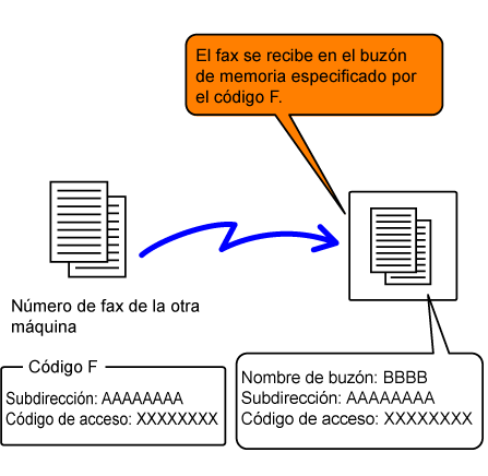 un fax almacenado en un buzón de memoria con código F (memoria de