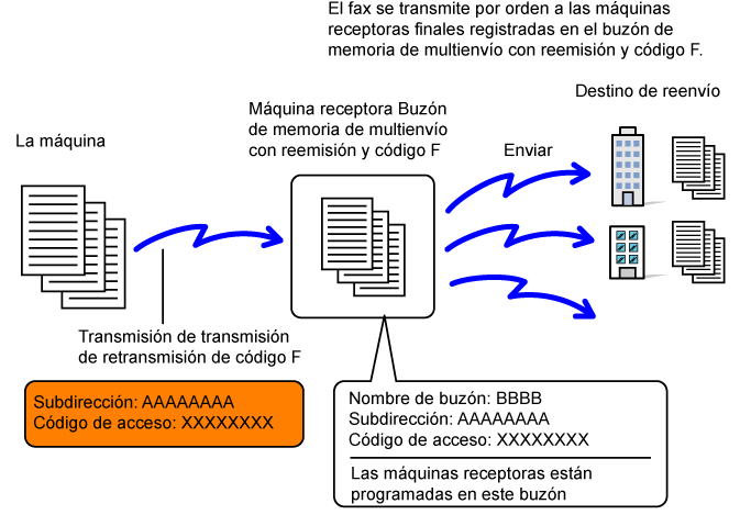 Buzón confidencial con código F | Función de transmisión multienvío con reemisión y código F |