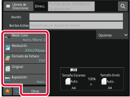 Especifique el tamaño de escaneado original, la exposición, el formato de archivo y otros elementos.