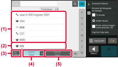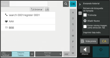 tecla [Libreta de direcciones] en la pantalla inicial en modo de envío de imágenes,