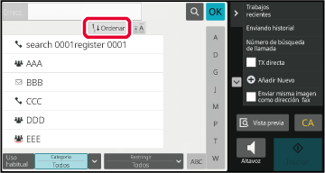 Si pulsa la tecla [Ordenar] se mostrará una lista