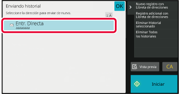 En el modo de envío de imágenes o fax, toque [Enviando historial]