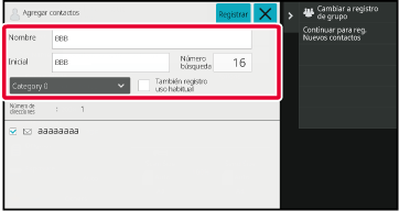 Si pulsa [Registro adicional con Libreta de direcciones] en el panel de acciones,