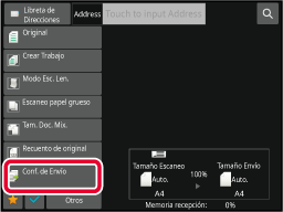 Este modo está disponible para Escáner, Carpeta de red y FTP/Escritorio. Se encuentra vinculado a un modo con la función apropiada. |