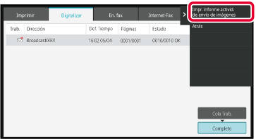 Después de pulsar la tecla de la retransmisión completada, pulse [Comprobar detalles de trabajo seleccionado] en el panel de acciones.