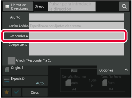 Para cambiar la dirección de respuesta, pulse el recuadro [Responder A].