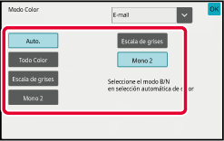 La máquina detecta si el original es en color o en blanco y negro y selecciona automáticamente el escaneado a todo color o en blanco y negro (Mono2 o escala de grises). |