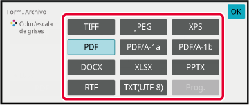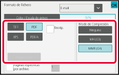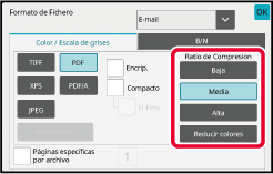 *1 Si se selecciona PDF (incluido cifrado y compresión alta) como formato de archivo, se podría utilizar la compresión flate para reducir el tamaño del archivo.