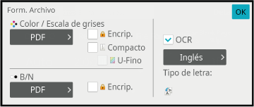 se requiere el kit de expansión OCR.) Para activar OCR, seleccione
