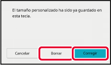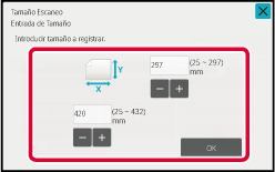 Pulse las áreas que muestran los tamaños de ancho y de alto respectivamente, e introduzca los tamaños mediante las teclas numéricas.