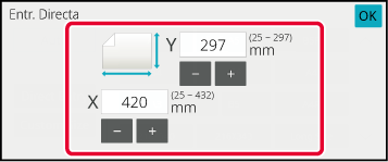 Después de pulsar la tecla "Tamaño Escaneo", pulse la tecla [Entr. Directa].