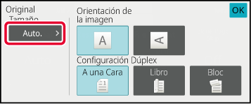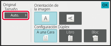 En la pantalla inicial, compruebe que el tamaño especificado se muestra en la tecla [Original].En Modo