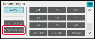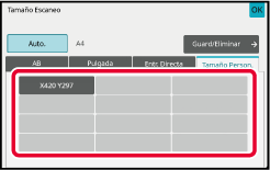 Pulse la tecla [Tamaño Escaneo] y, a continuación, pulse la ficha [Tamaño Person.].