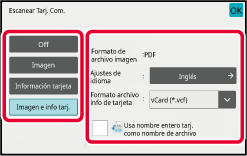 Especifique los ajustes para la Escaneo de tarjeta comercial.
