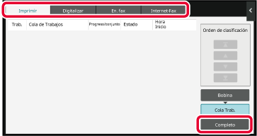 Pulse la pantalla de estado del trabajo.