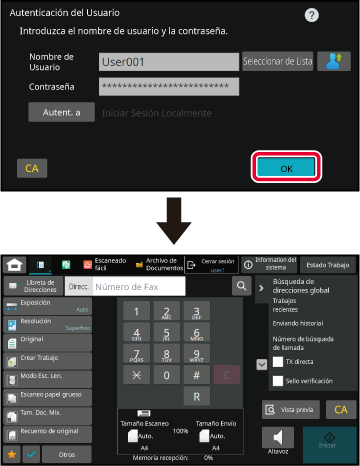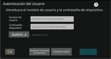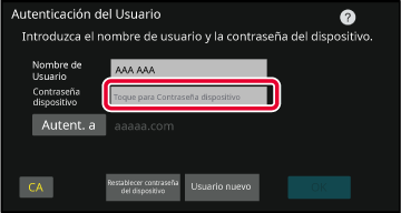 inicio de sesión/contraseña del dispositivo, pulse la tecla "Usuario