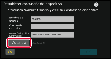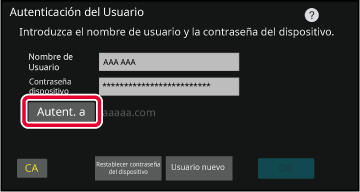 Pulse la tecla [Autent. A] y se mostrará una lista de