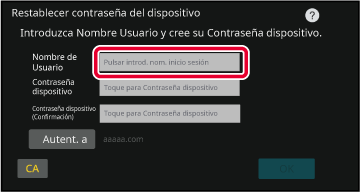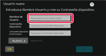 Introducción mediante el teclado de softwareSi el registro del nombre de usuario no se ha realizado