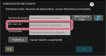 que aparezca la tecla [Dir. corr. el.], según el método de autenticación. Pulse