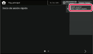 Toque [Añadir usuario/ Editar registro usuario] en el panel de acciones.