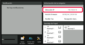Revise la dirección IP en la información de la máquina.