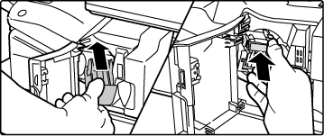 tästä vivusta poistaaksesi paperitukoksen tai poistaaksesi niittitukoksen.