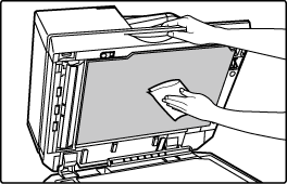 Avaa automaattinen asiakirjan syöttölaite ja irrota lasinpuhdistin.