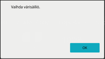 Vaihda värikasetti. Kun tämä viesti tulee esiin, valmistele