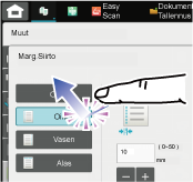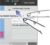 Kosketus Kosketa paneelia sormella ja nosta se sitten nopeasti. Tällä tavalla valitaan näppäin, välilehti tai valintaruutu. |