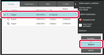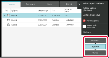 kosketa haluamasi mukaan näppäintä [Taustatul.], [Työjono] tai