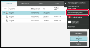 noudattaen seuraavaa järjestystä: [Taustatul.], [Työjono] ja [Valmis].