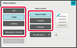 Tällä valinnalla otetaan käyttöön lajittelutila, kun alkuperäinen asiakirja asetetaan automaattiseen asiakirjan syöttölaitteeseen, ja ryhmätila, kun alkuperäinen asiakirja asetetaan valotuslasille. |
