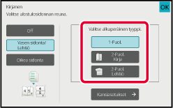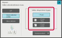 Kosketa [1-Puol.], [2-Puoleinen Kirja] tai [2-Puoleinen Lehtiö]-näppäintä alkuperäisasiakirjan mukaisesti.