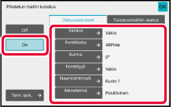 Kosketa [On]-näppäintä ja määritä tarpeen kukin kohta [Oletusasetukset]-välilehden asetuksissa.